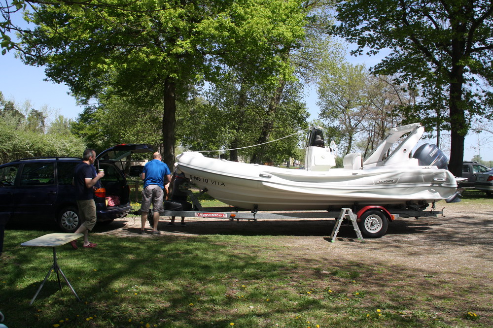 Wegen Überbreite muss die Luft beim trailern raus – das ist aber dank eingebauter Pumpe kein Problem http://www.falconrib.de/treffen/waverider1.JPG Nun der erste Slipvorgang … ein guter Trailer muss doch gar nicht ins Wasser heisst es ja immer…:ka5: http://www.falconrib.de/treffen/waverider2.JPG … oder doch ? wir konnten Martin überzeugen reinzufahren … die Alternative wäre zu schade gewesen. Der Slip ist einfach zu flach. Also rein damit…:chapeau: http://www.falconrib.de/treffen/waverider3.JPG Gut, ganz so weit hätte es nicht sein müssen - aber ist ja nur Süsswasser. Das Boot ist super vom Trailer runtergelaufen und der Yammi ist auch sofort angesprungen… http://www.falconrib.de/treffen/waverider4.JPG Bernd und wir hatten unsere Boote schon im Wasser http://www.falconrib.de/treffen/waverider5.JPG So stand dem Dauergrinsen :6987::yo::grins::grins: von Martin und Sylvia nix mehr im Weg und nach einer Gewöhnungszeit von ca. 5 Minuten wurde auch gleich mal getestet was geht…. http://www.falconrib.de/treffen/waverider6.JPG … was natürlich noch mehr Breitgrinsen erzeugte :cool: http://www.falconrib.de/treffen/waverider7.jpg http://www.falconrib.de/treffen/waverider12.JPG Auch Ellen und Bernd hatten ihren Spaß:chapeau: http://www.falconrib.de/treffen/waverider8.JPG Dass am Abend noch Jipi´s und am nächsten Morgen Familie Freiheit und Familie Corse zu diesem Spontantreffen dazu kamen, hat uns natürlich sehr gefreut.:smileys5_ http://www.falconrib.de/treffen/waverider9.JPG Für uns war es auch ein aufschlussreiches Wochenende weil wir erstmals mit unserem Selbstausbau-Womo unterwegs waren und festgestellt haben, dass so ein Wochenendtrip jetzt um ein Vieles einfacher als vorher ist. http://www.falconrib.de/treffen/waverider10.JPG Und unsere Vorbehalte wegen der Slipperei waren auch unbegründet – zumindest an dieser Slippe ging es völlig problemlos:cool: Erleichtert ! http://www.falconrib.de/treffen/waverider11.JPG http://www.falconrib.de/treffen/waverider13.JPG Wir mussten am Sonntag morgen schon wieder abreisen aber ich hoffe, dass ihr noch einen schönen Bootstag auf dem Rhein hattet. @Michael:smileys5_, vielen Dank für den Brötchenservice |
