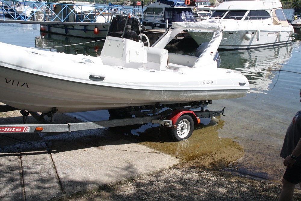 Dem Martin wünsche ich alles Gute mit seinem Stingher! Aber bitte beim Slipen nur Reifen ins Wasser und unbedingt den Motor hoch trimmen damit es keine Schäden an Radlager/Bremsen und am Motorskeg mit Prop gibt:biere::smileys5_ |