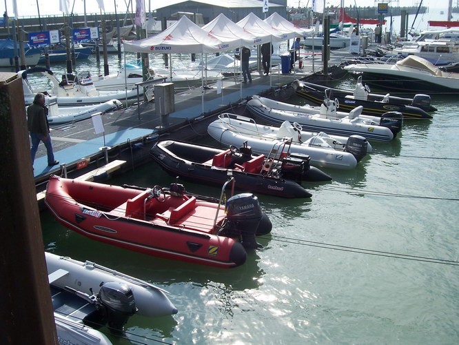 natürlich geht Doppelmotorisierung auch auf kleineren Schlauchbooten, guckst Du da - das Boot steht schon das 3. Jahr am Zodiac/Bombard-Stand in FN im Hafen - Jörg/Brando, danke fürs Bild aus dem Interboot 2006 Thread im blauen Forum .
