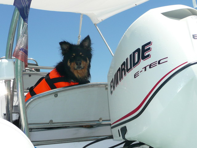 Zöpfe, Verbände an allen Beinen, und alles was zwei Mädchen noch so anstellen können hat unser Theo schon mit gemacht. Und ich glaube es hat ihm gefallen. Als er klein war haben wir ihn immer mitgenommen. Ich kann mich an eine Situation errinnern, als wir auf dem Prakplatz eines Einkaufszentrums "bei Fuß" ohne Leine geübt haben: Ein älteres Ehepaar öffnete so zwei Meter vor uns den Kofferraum und was machte der Hund: Er sprang rein, weil er dachte es sollte so sein. Die Besitzer des Kombis wollten es nicht glauben...... Jetzt wird er langsam alt und trotzdem, wenn wir anfangen zu packen wartet er an der Tür, damit wir ja nicht ohne ihn fahren. In HR ist ihm immer viel zu warm für Action. Er liegt im Wowa unterm Tisch und genießt die Ruhe, wenn wir Boot fahren. Manchmal, am Wochenende, guckt er uns vormittags an, als wollte er sagen: Wollt ihr nicht zur Arbeit und in die Schule, damit ich wieder meine Ruhe habe ???? Wir würden NIE (mehr) ohne unseren Hund wegfahren. Er gehört dazu. Quasi ein Mitglied der Familie. Auch im Winter und im Skiurlaub.