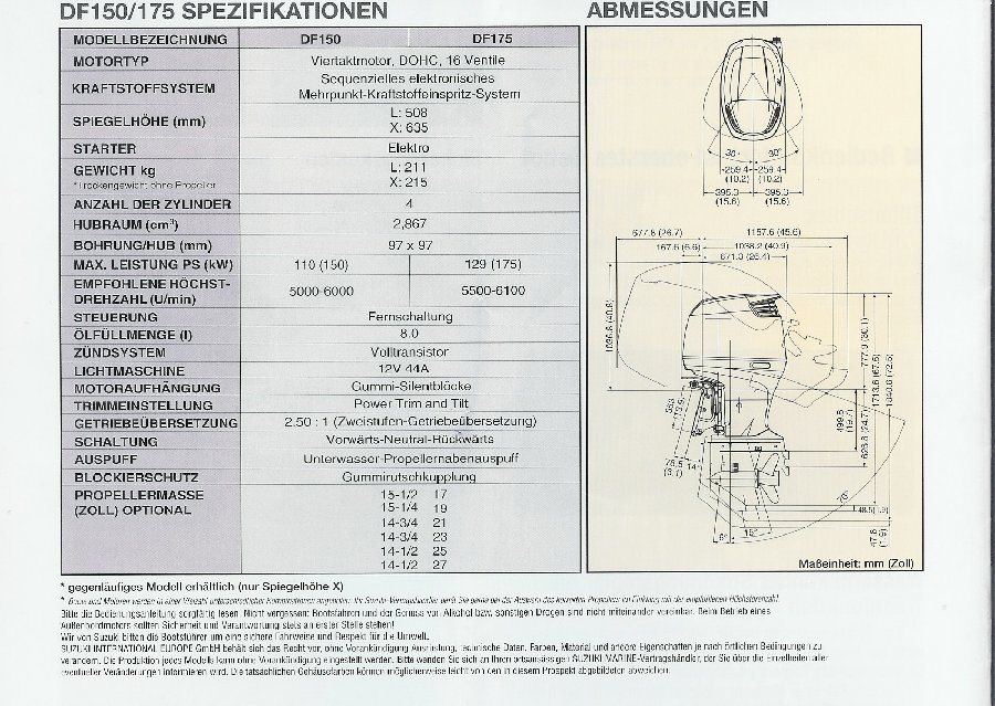 genau sind es 211 kg. In Hamburg waren die neuen Motoren auch ausgestellt. ![]() Frag mich aber nicht in welcher Halle. Irgendwo zwischen den Yachten. ![]() Lt. dem Verkäufer werden in diesem Jahr noch die ersten 5 Stück ausgeliefert. (Glaub ich aber nicht so ganz ![]() Hier ein paar Bildchen und technische Daten für Dich: ![]() ![]() ![]() Gruss Jörg PS: ich hätte noch ein Prospekt übrig ![]() |