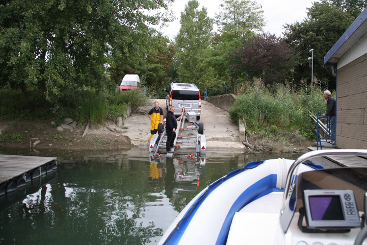Thorsten hat an seinem T4 mit Winde rausgeslippt. Nach dem Einslippen kam er nämlich schon mit dem leeren Trailer kaum die Rampe hoch.