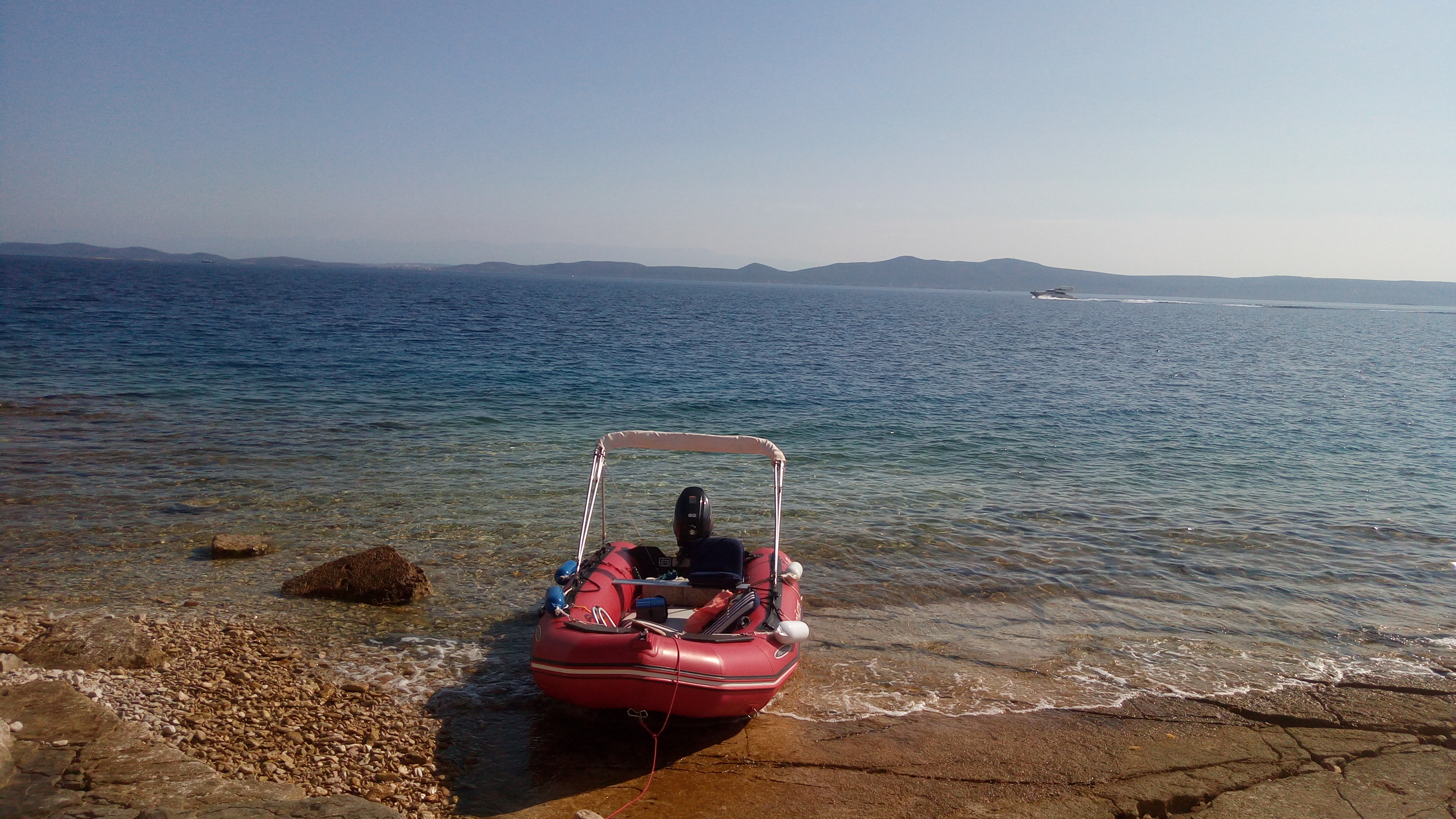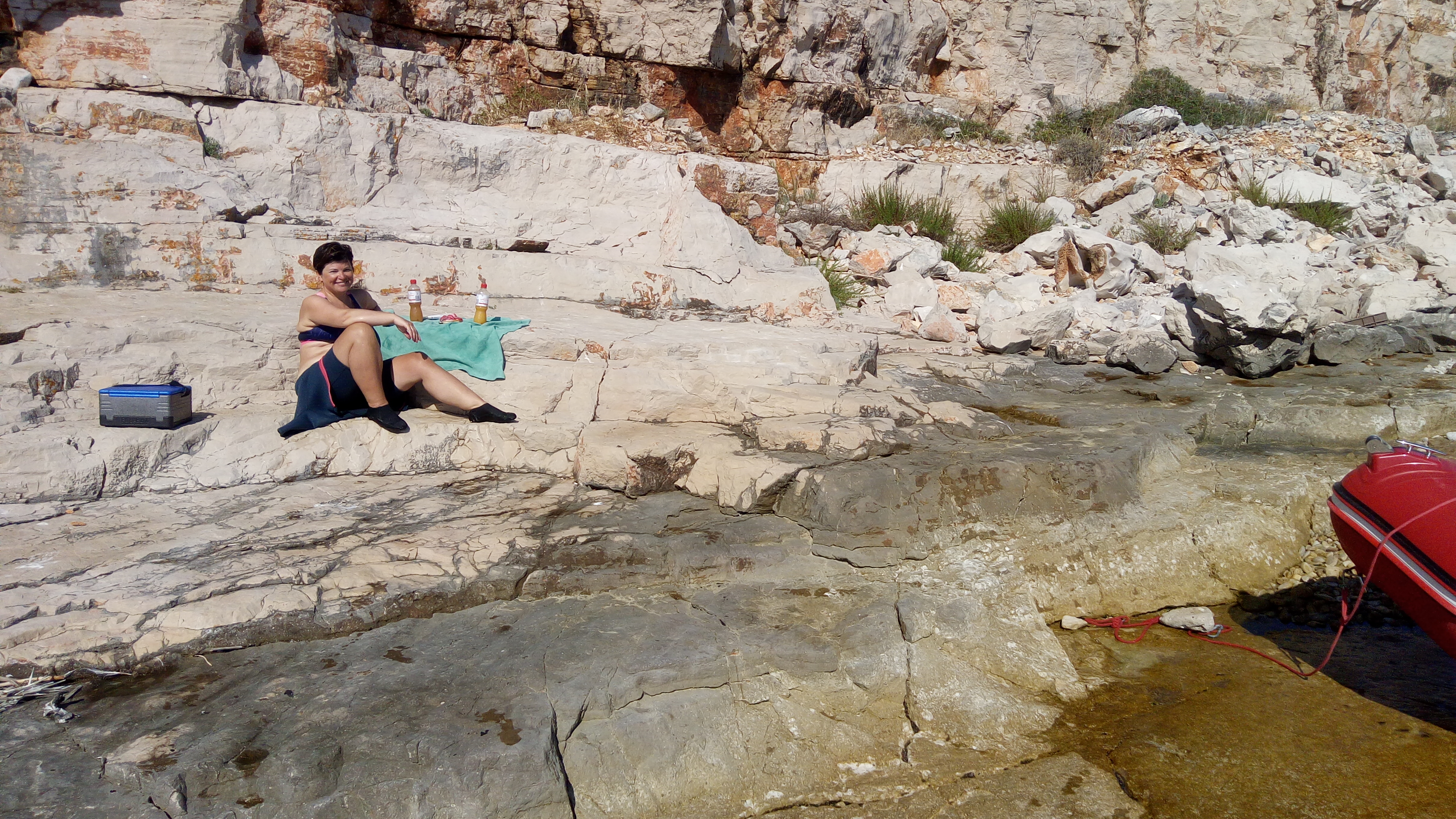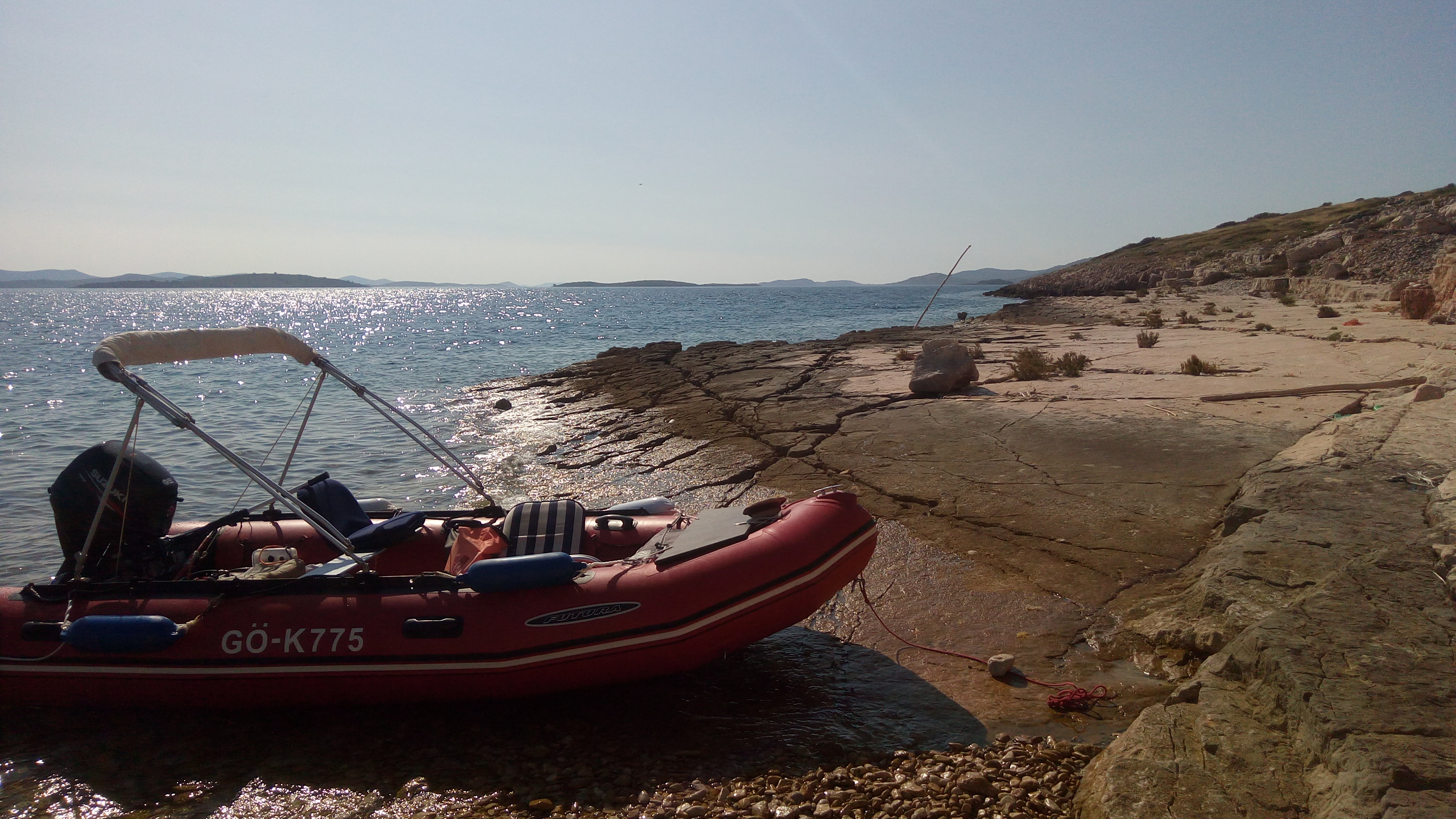 Auf meinem Schlauchboot, die Benutzung eines Gaskochers wäre mir zu riskant. Aber nach dem wir eine "Super-Grill-Party-Anlage" mit "Theke-Tresen und Sitzmöglichkeiten" nahe Dugi Otok entdeckt haben, habe ich einen Gaskocher für dieses Jahr doch gekauft.
